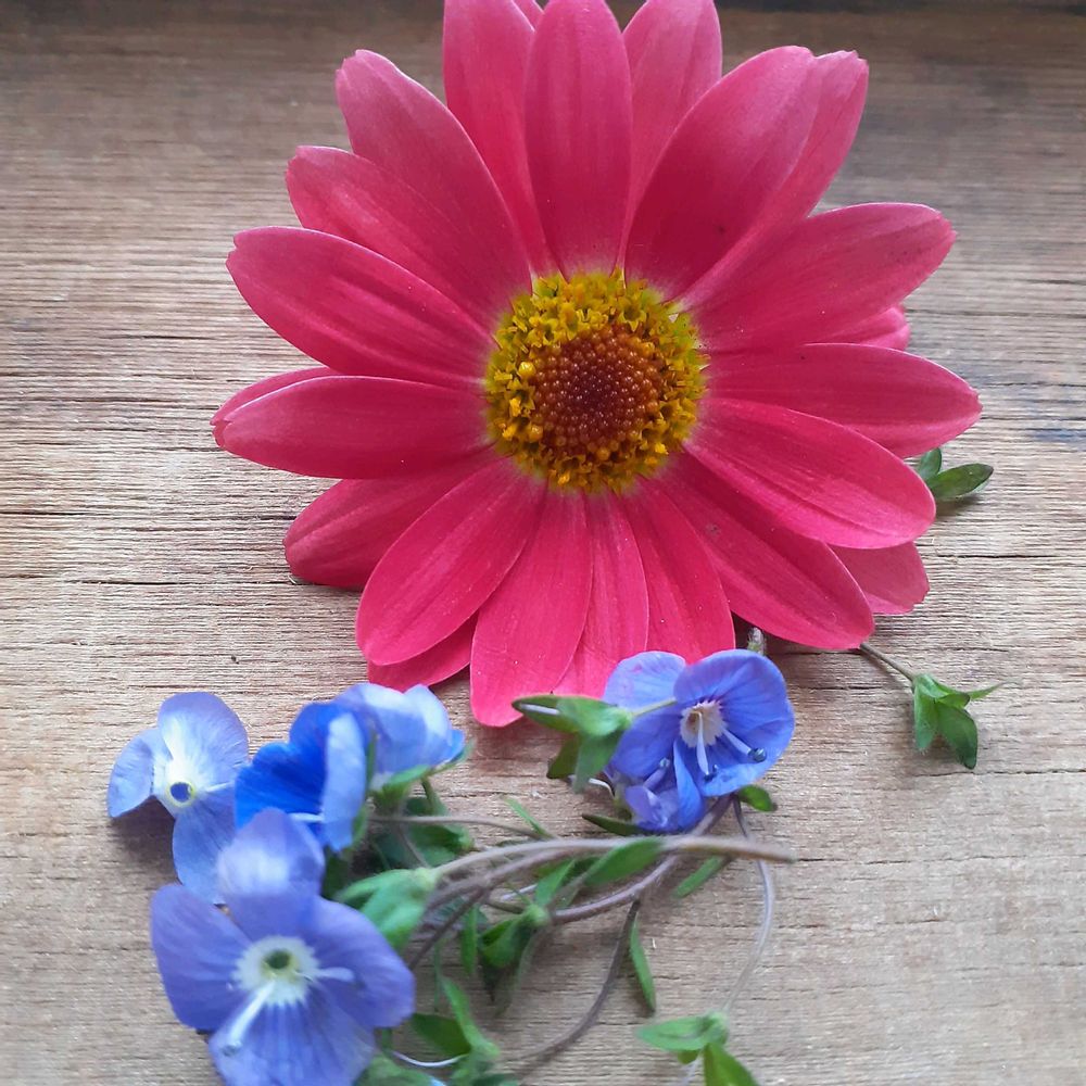 ②劇中に赤と青のお花がでてきたので赤いマーガレットと青いベロニカオックスフォードブルー❤💙