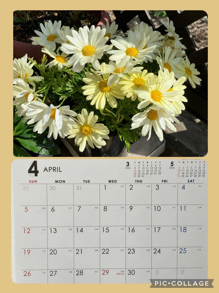 マーガレットのカレンダーは庭の花で作ったよ🌼🎁