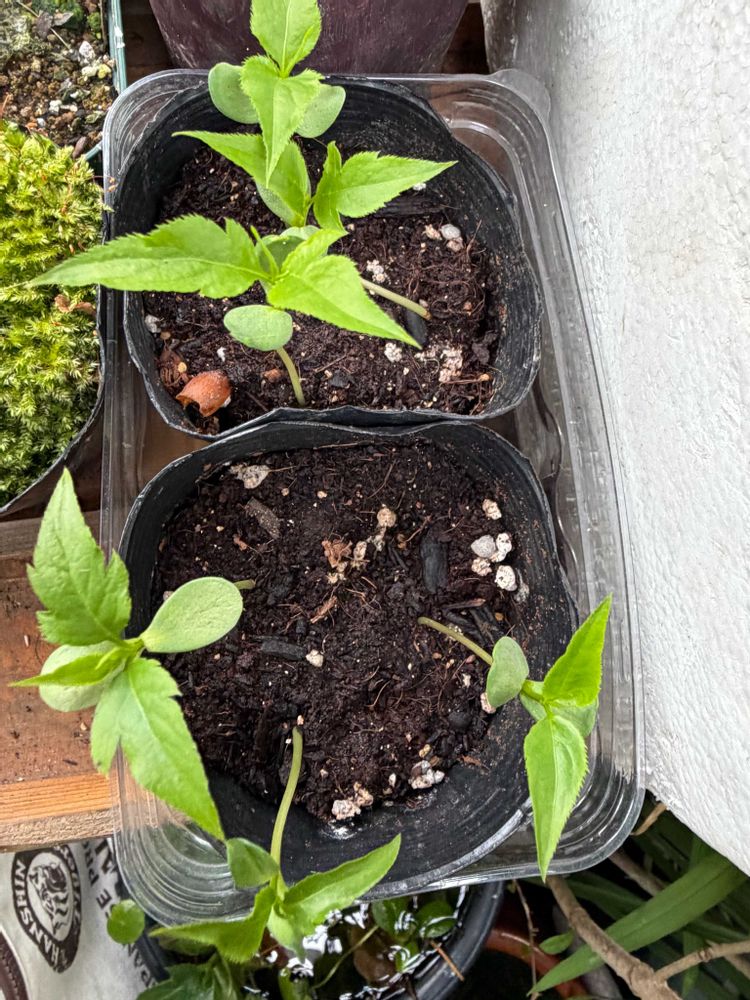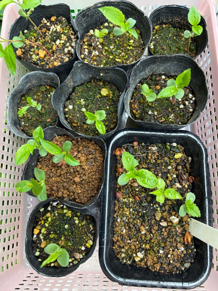 食後に植えた種が冬を越して芽が出てきました🌱🌱🌱🌱🌱