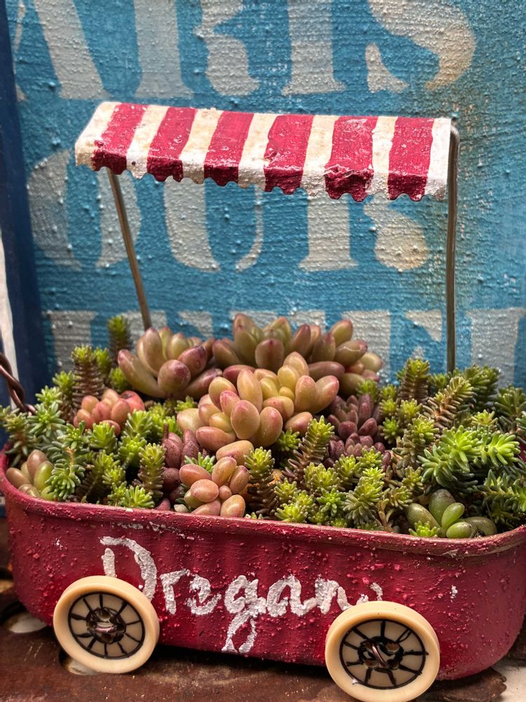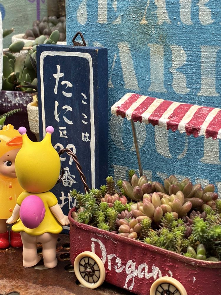 fumi fumiサンのキャンピングワゴンにセダム寄せめっちゃ可愛い~ね♥️素敵だわ✨