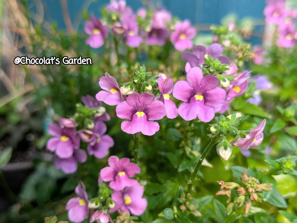 地植えはバラ、クレマチスをメインにフェリシアやネモフィラなどの下草たち