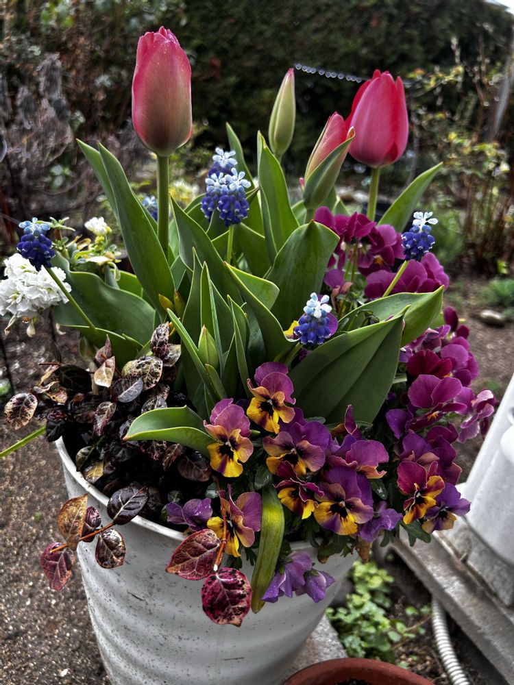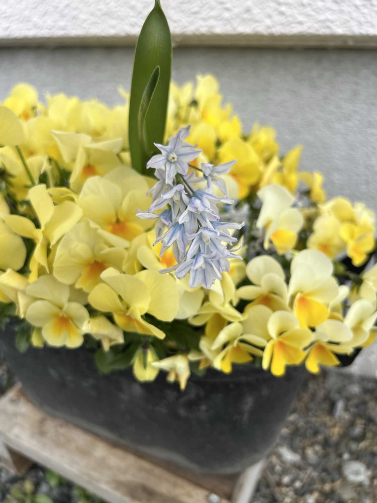 ④ビオラひよこももかとプシュキニアを寄せ植えしたけれど、プシュキニアがひよこももかに埋もれてしまった😰