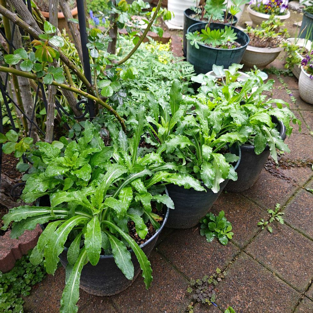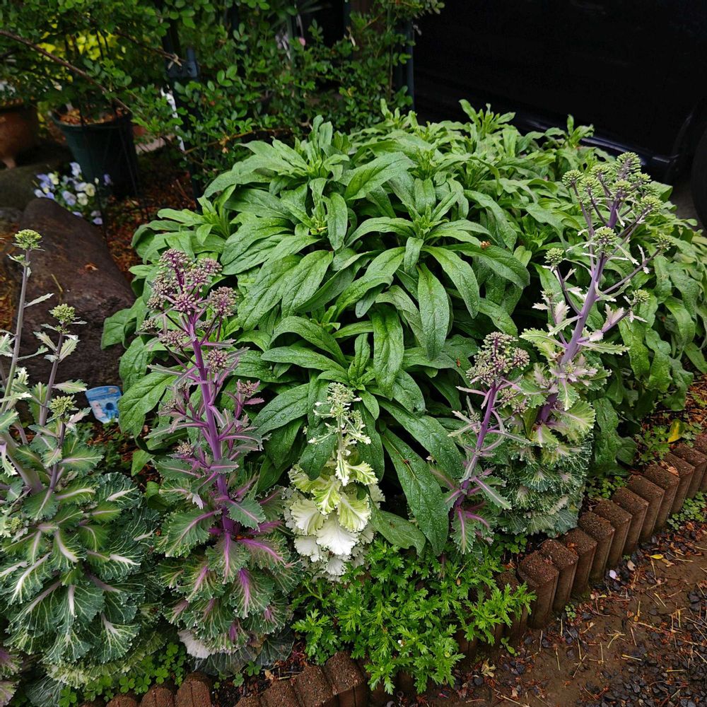 手前の葉牡丹が完全に飲まれ気味です💦 葉牡丹の採種は左端から3株で充分だからカットしようかしら🤔