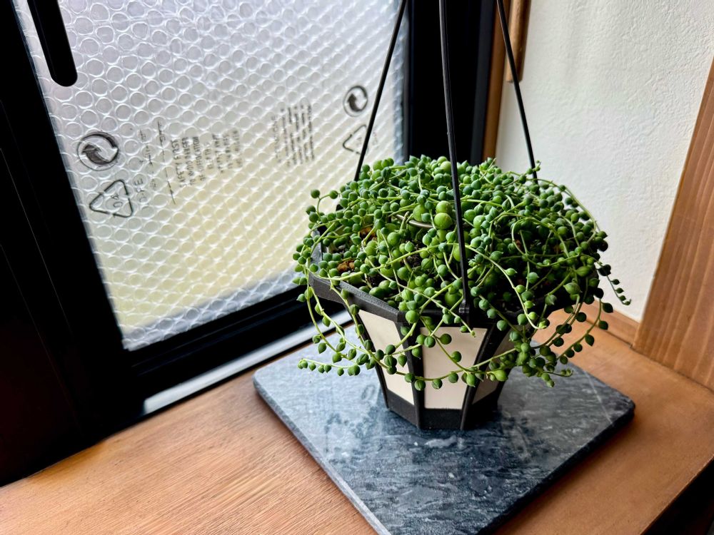 この吊り鉢、きっとうちのグリーンネックレスによく似合うだろうなぁ