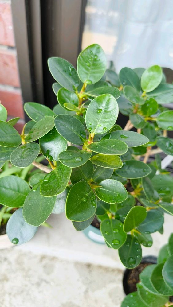 先月別々の場所で買ったパンダガジュマル。右、葉は丸いが少し先が尖り気味で新葉出るのが早い。