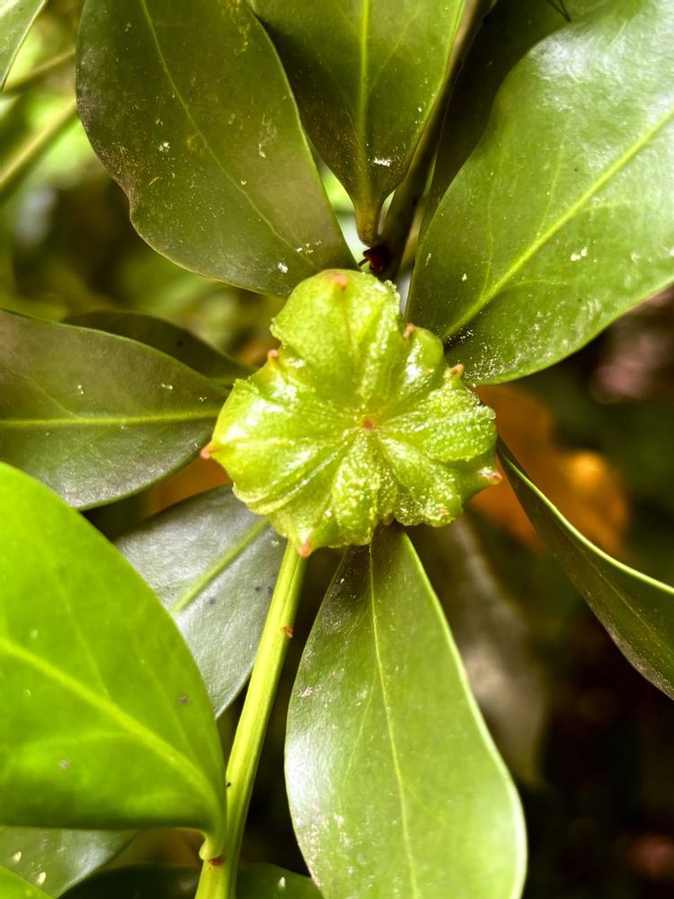 袋果が裂開するとすぐに落下するみたいで、葉腋についたままの熟した果実は見つかりませんでした😅