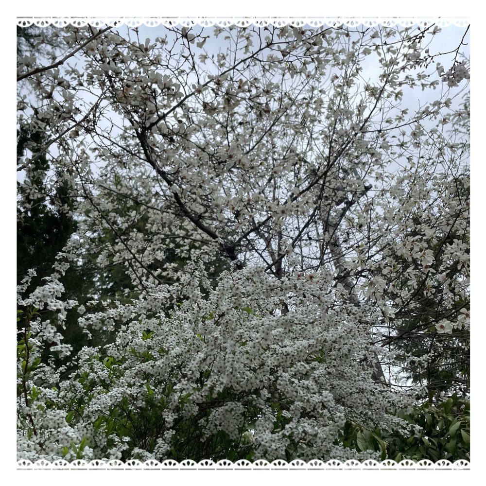 奥にコブシ、アセビ、ユキヤナギ満開です🤍