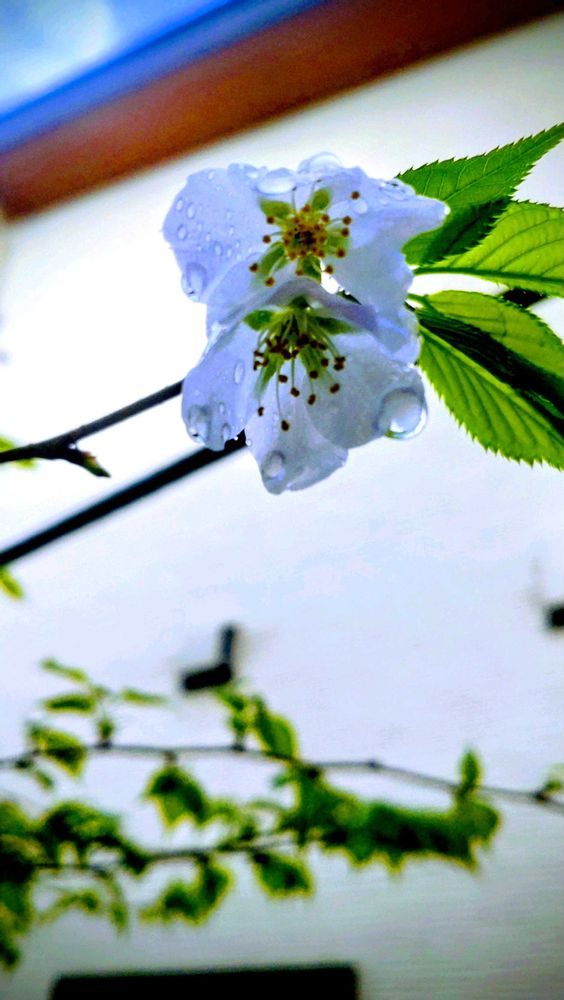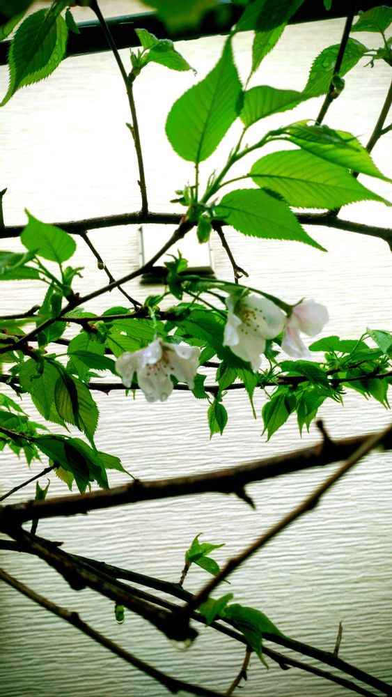 我が家のオオシマザクラ、、、今年は17輪咲きました、、、葉が出揃ったら、塩漬けにしたいと思います😌