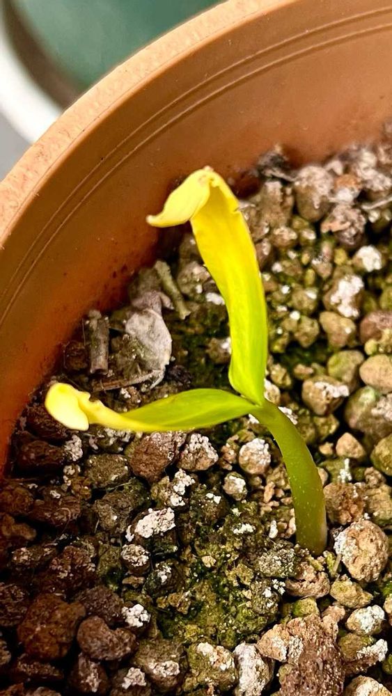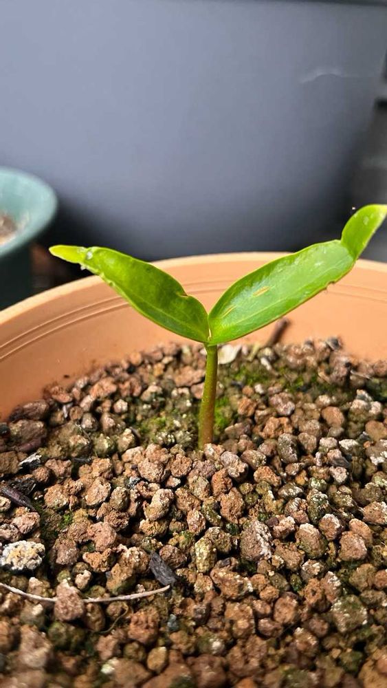 庭の紫木蓮とモチノキの木の下で 小さな実から発芽🌱している子を発見👀 なんの実だろう…🧐 鳥が運んできたのかな〜🦜♪