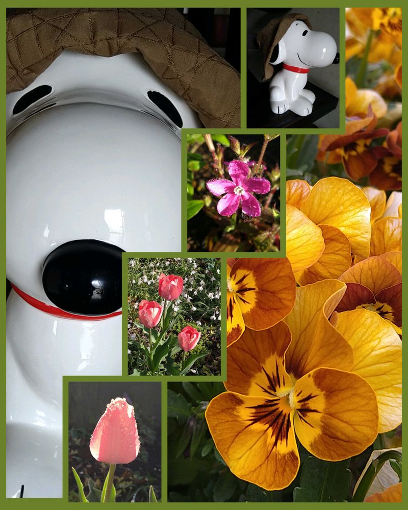 スヌーピーと、お花達,可愛い💕コラージュですね🤭