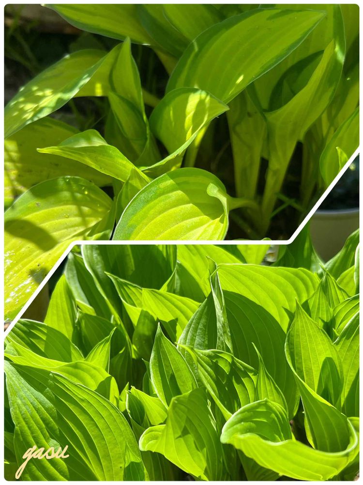 ④この雨の恩恵を受けてる代表がギボウシかなぁ✨ まだ薄くて淡い葉はとっても爽やかですよね😌 あちこちで大きくなってます🎶