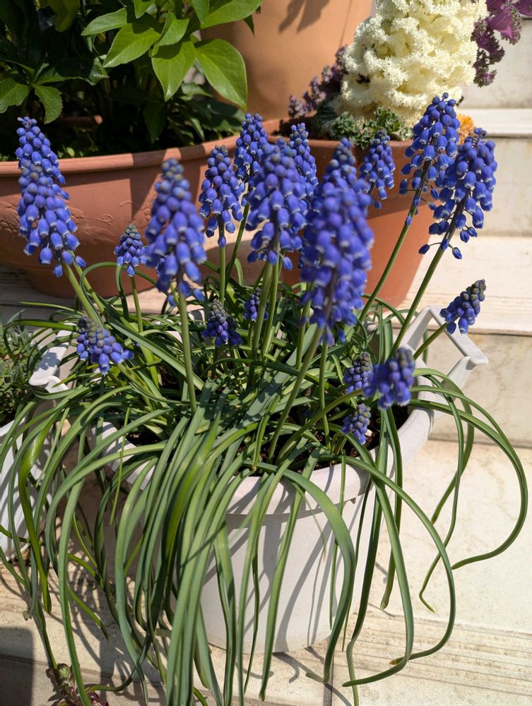 ムスカリがどの鉢も満開になり花ニラも庭の隅で賑やかに開花