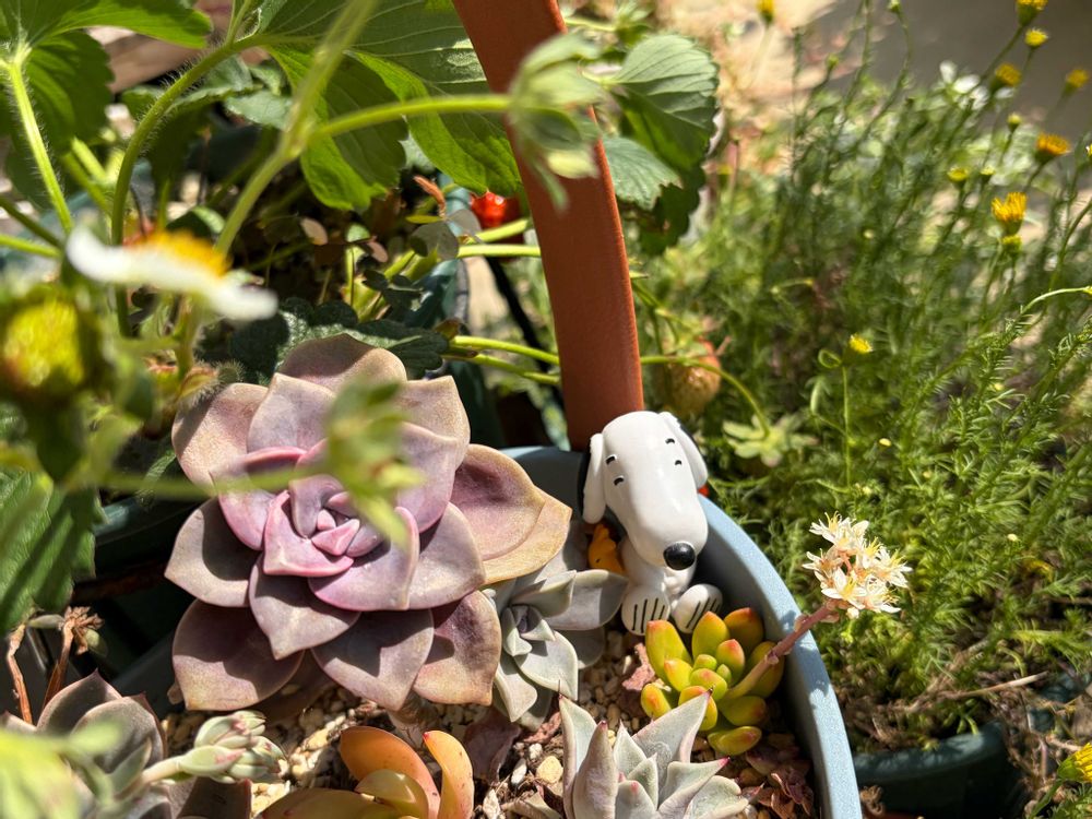 ゆったりとのんびり〜時間がゆっくり流れていく感じ☺️様々な植物に囲まれてるスヌーピー🪴癒されるわ〜😊💕
