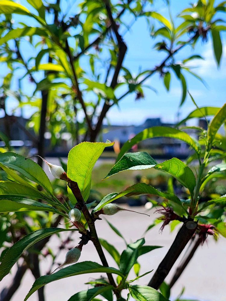 疲れぴよぴよ…桃の実が出来てたので花がらを取って、これは絶対に要らんなってところだけ摘果。風が超強かったので色々と固定し直したりとかの作業をして、夕方の葉水をざっと撒いて終わりにしました。写真は