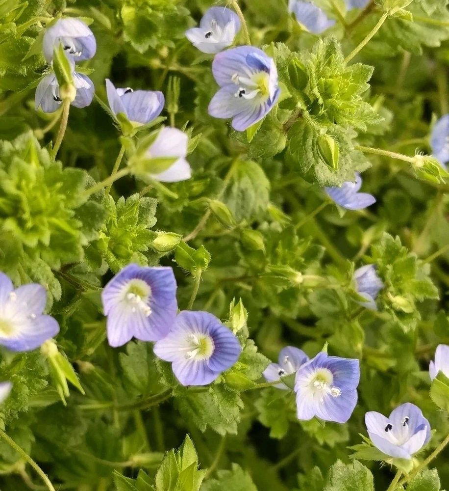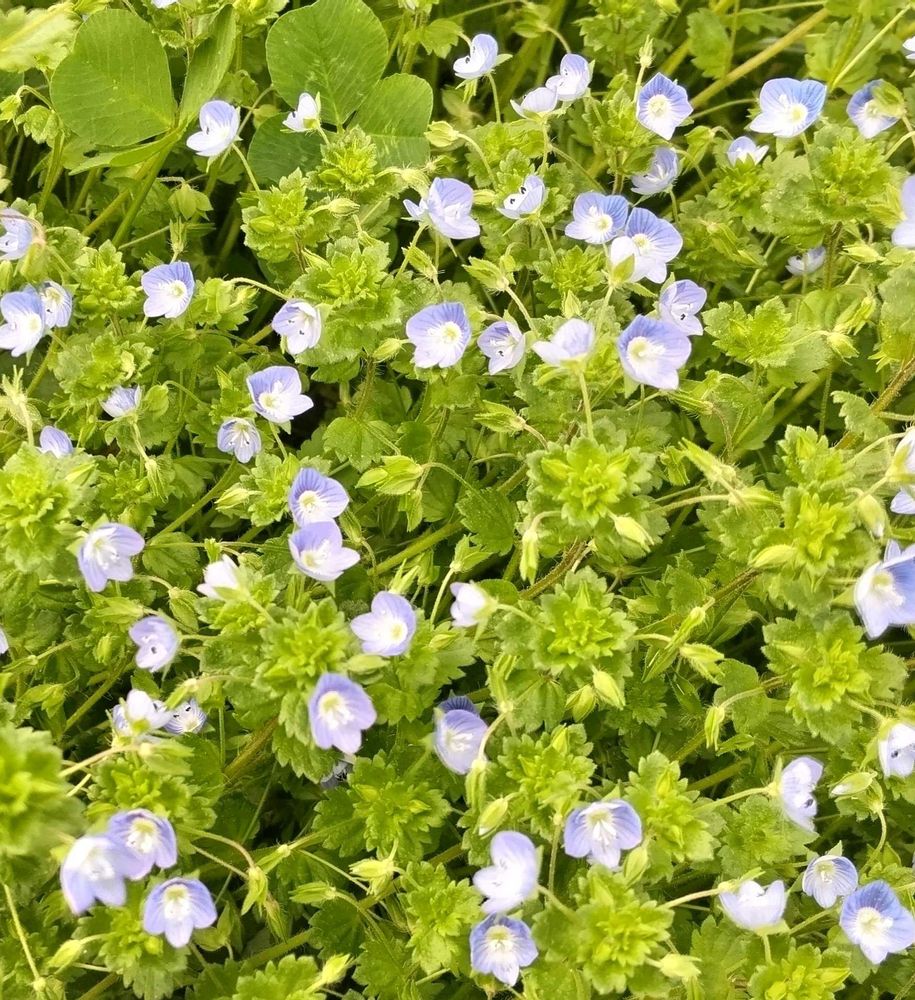 広場のベンチのあたりに青い花がいっぱいに見えたので何だろう…と近付いたらオオイヌノフグリでした❣️
