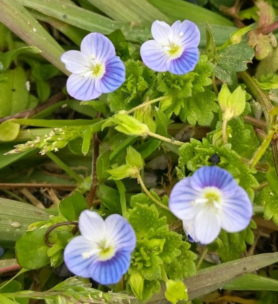 近所では全然見かけないオオイヌノフグリですが、孫のところからの帰りに立ち寄った道の駅の広場にビックリする程沢山さいていました‼️(①②)