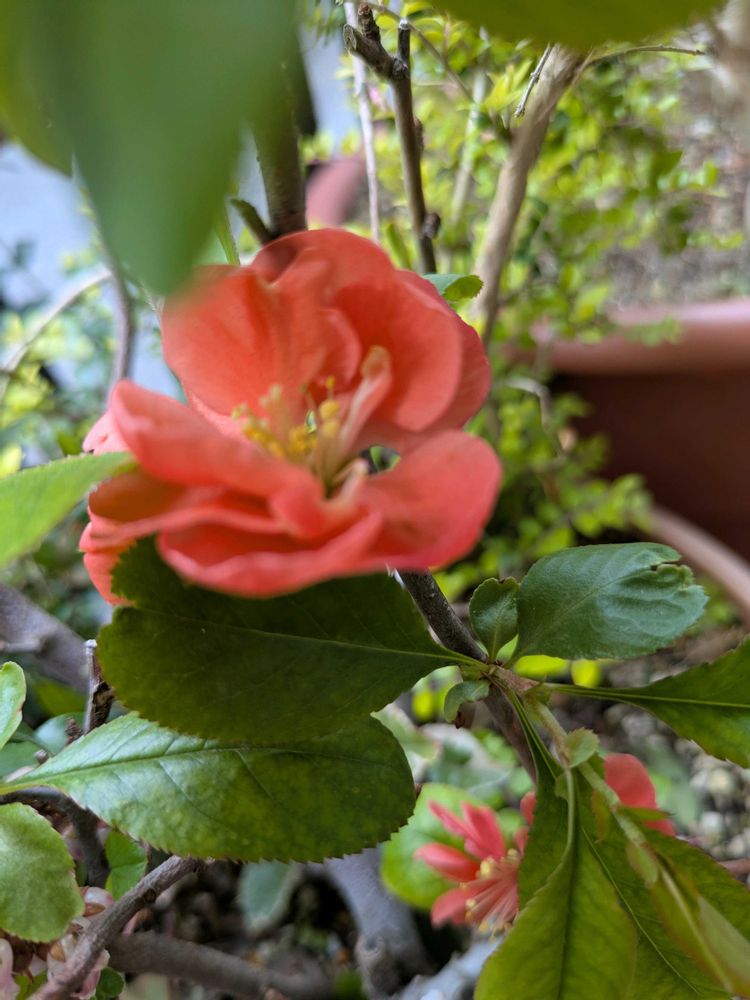 木瓜も毎年大きな八重のお花を沢山咲かせています☺️