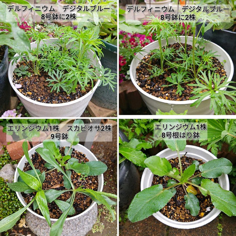 左下↙️のエリンジウムとスカビオサは寄せ植えちゃったけど、もうすでに窮屈かも?💦