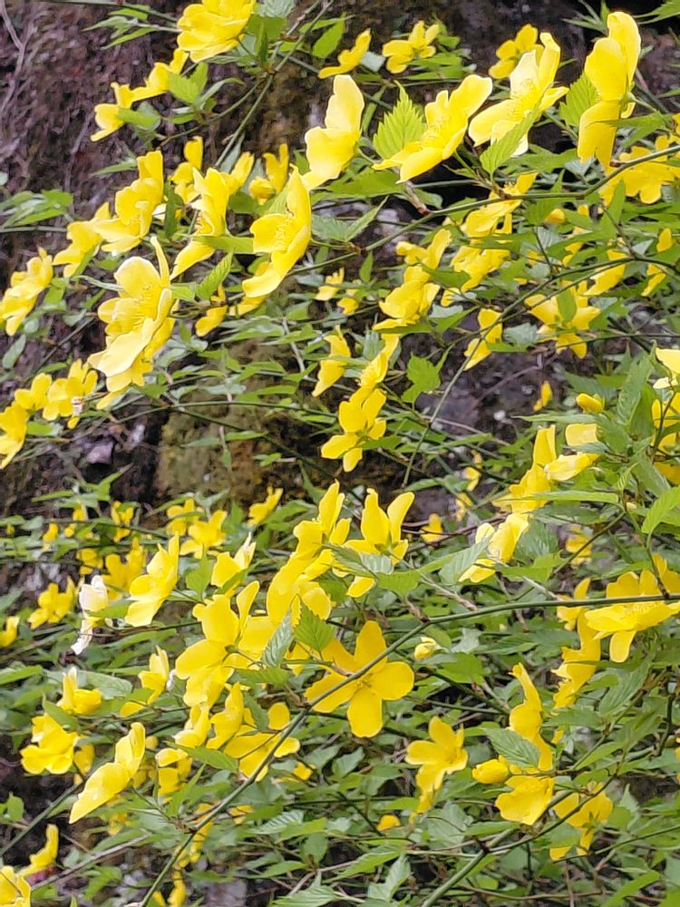 五台山のもこの一重のヤマブキが沢山自生し、車からヤマブキがエールを贈ってくれてるようです💛💛🎶