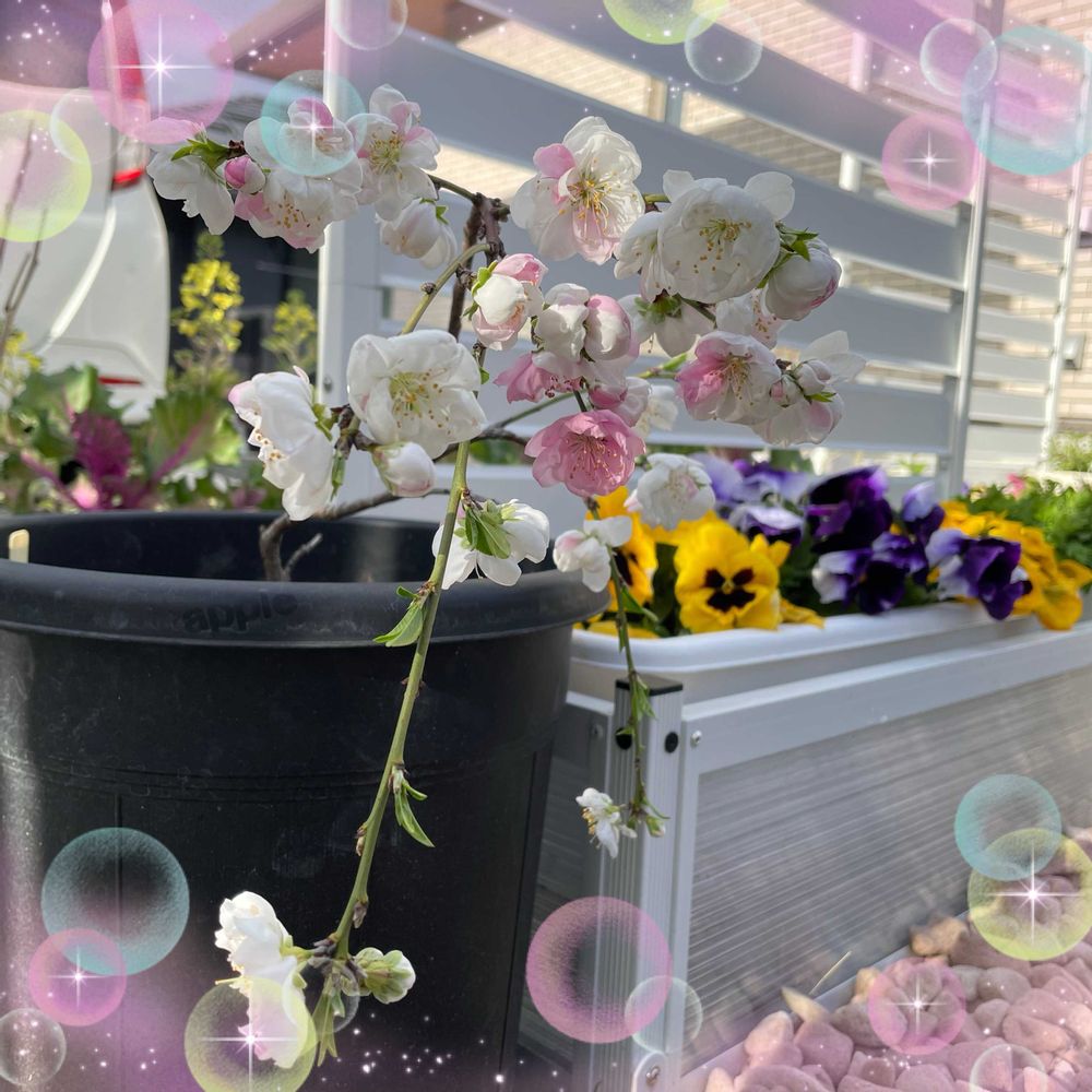 源平枝垂れ桃が紅白混ざって可愛い色になっていますね🎶🎶