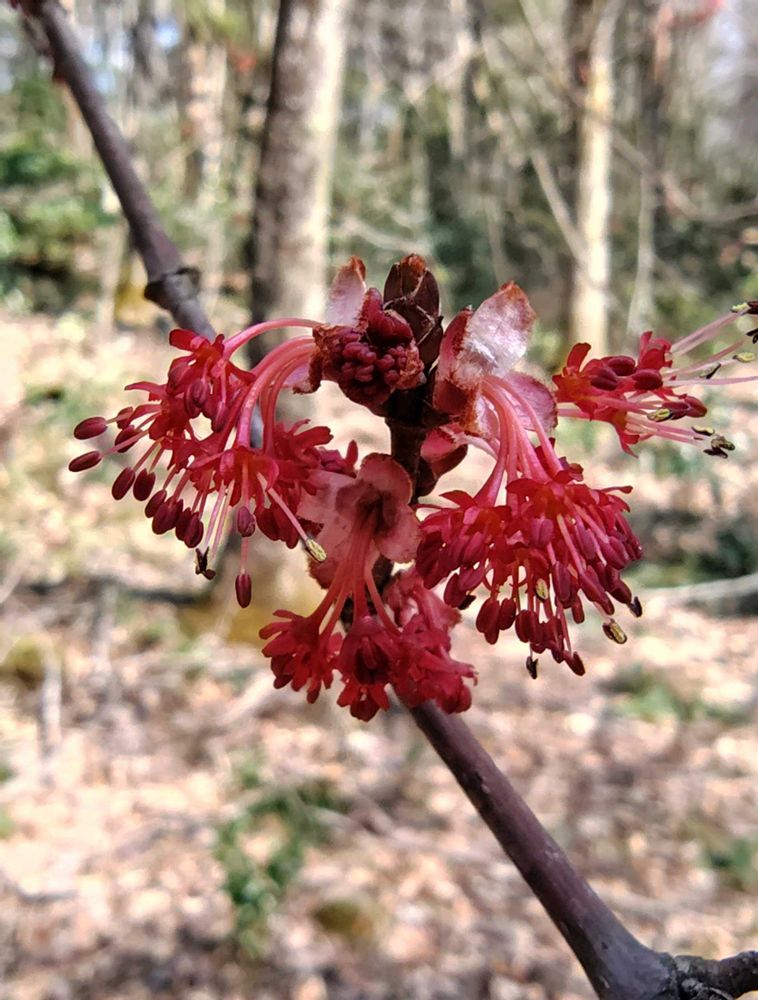 ハナノキ…岐阜・愛知・中野・滋賀県のみに分布する。日本固有種で別名、ハナカエデとも呼ばれる。絶滅危惧Ⅱ類に指定されています。葉が出る前に赤い花を咲かせることから、この名が付いたそうです、秋の紅葉も綺麗🍁