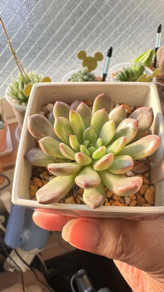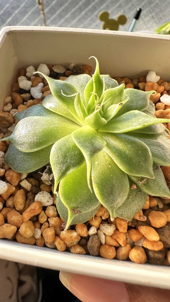 2025年4月にネットでたにたのさんの苗を購入した時におまけでついてきた名無しのエケベリアが面白く育っているので、成長記録を作りました。 この子の名前ご存知でしたら、ぜひ教えてください🙏