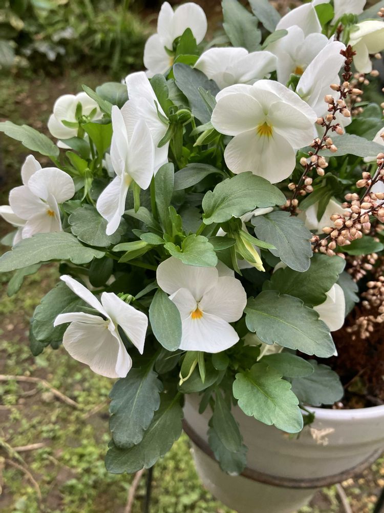 寄せ植えのビオラが占領
