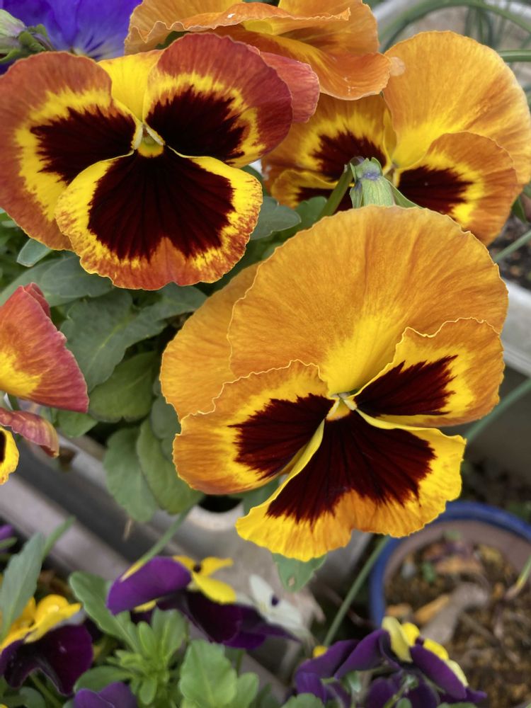 ビオラにパンジーもわが家でも元気いっぱい😄花柄摘み して カットして🤭