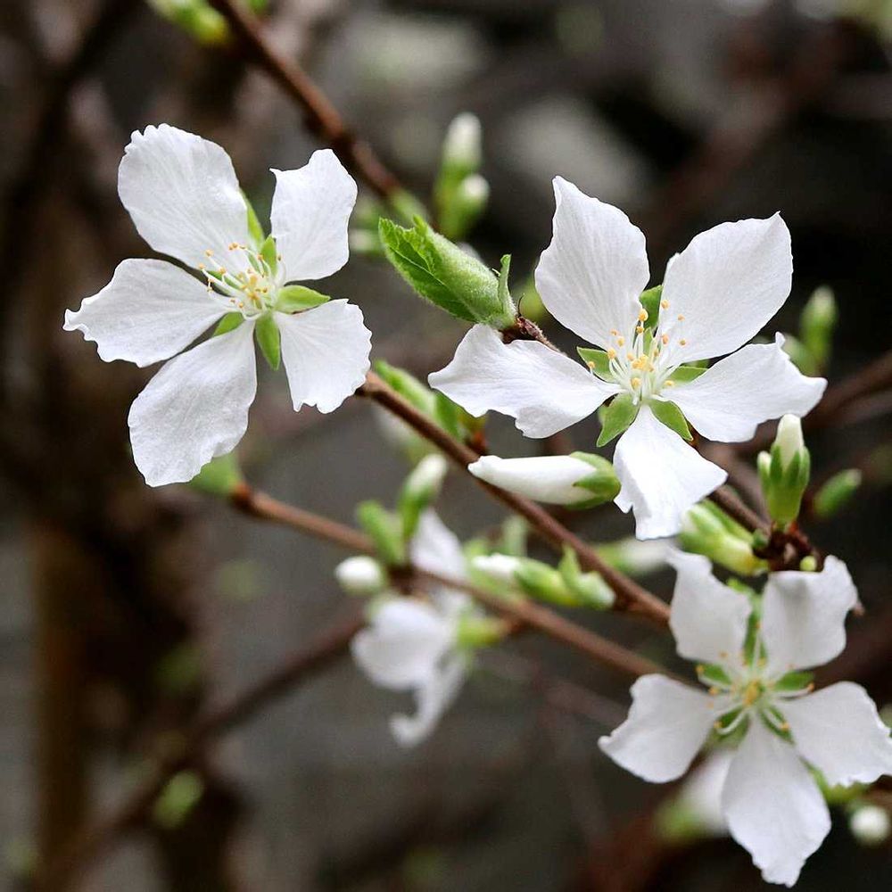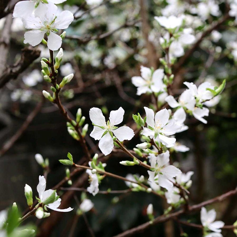 春、梅や桜に似た美しい花を枝いっぱいに咲かせる。
