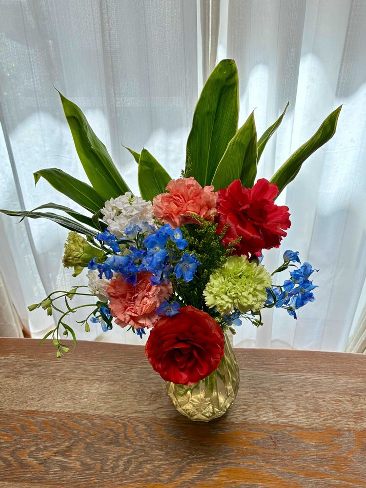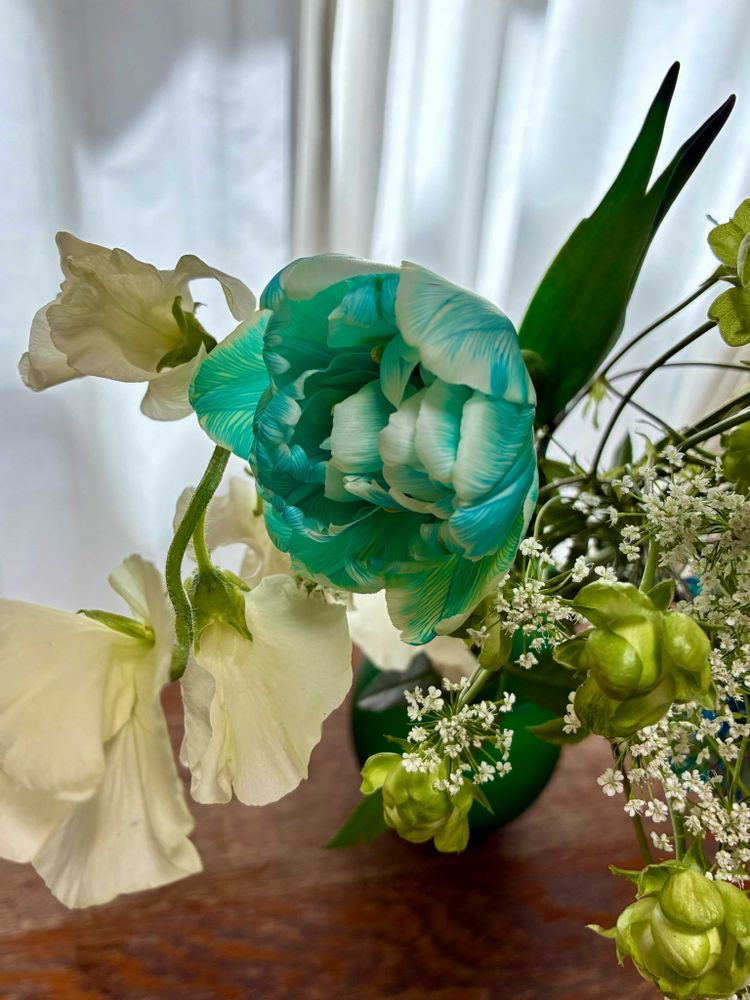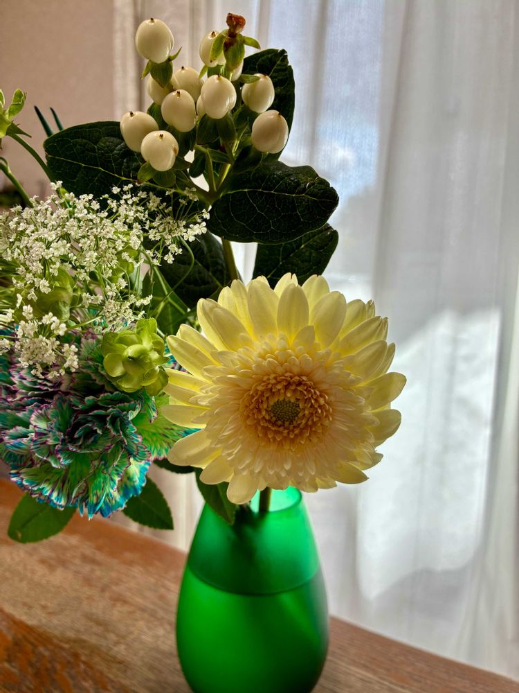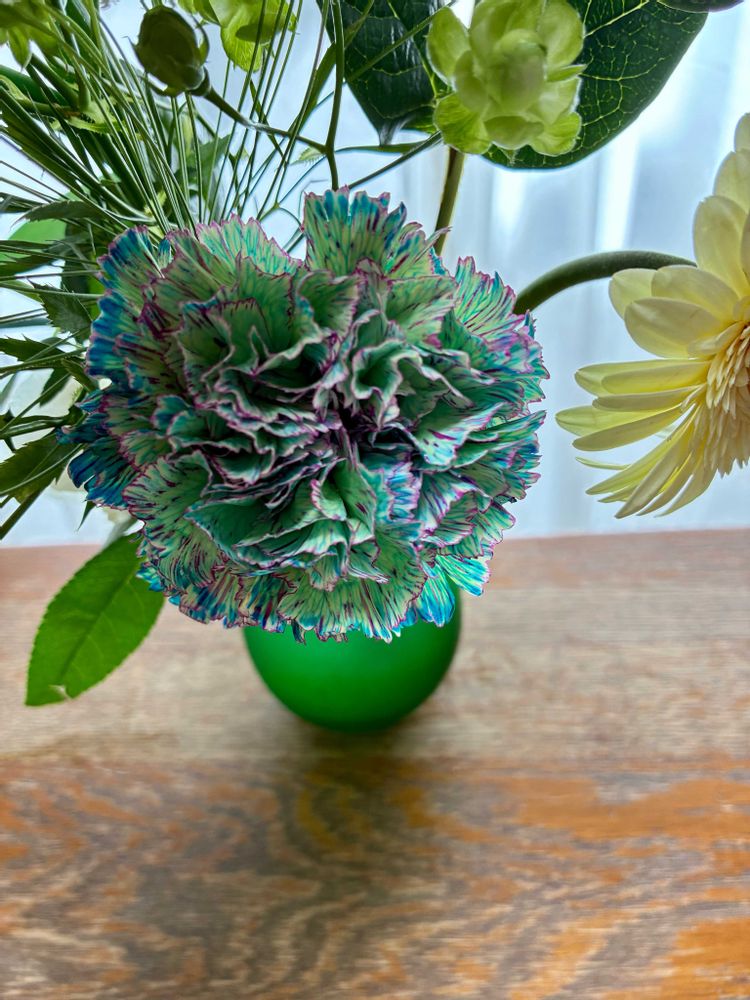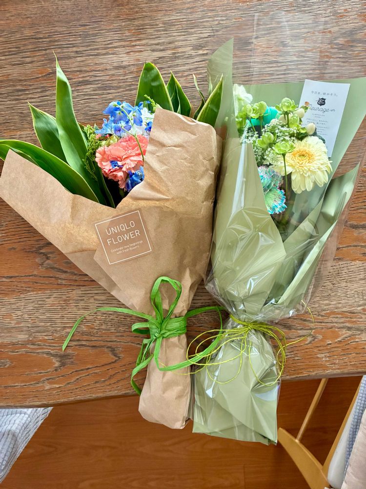 素敵な花束✨新宿のUNIQLOには花束もあるのね!とビックリ‼️他もあるのかもですが、オンラインもあるそう。 あと、ブルー系のカーネーションやチューリップも!今は色々カラフルですね🤩