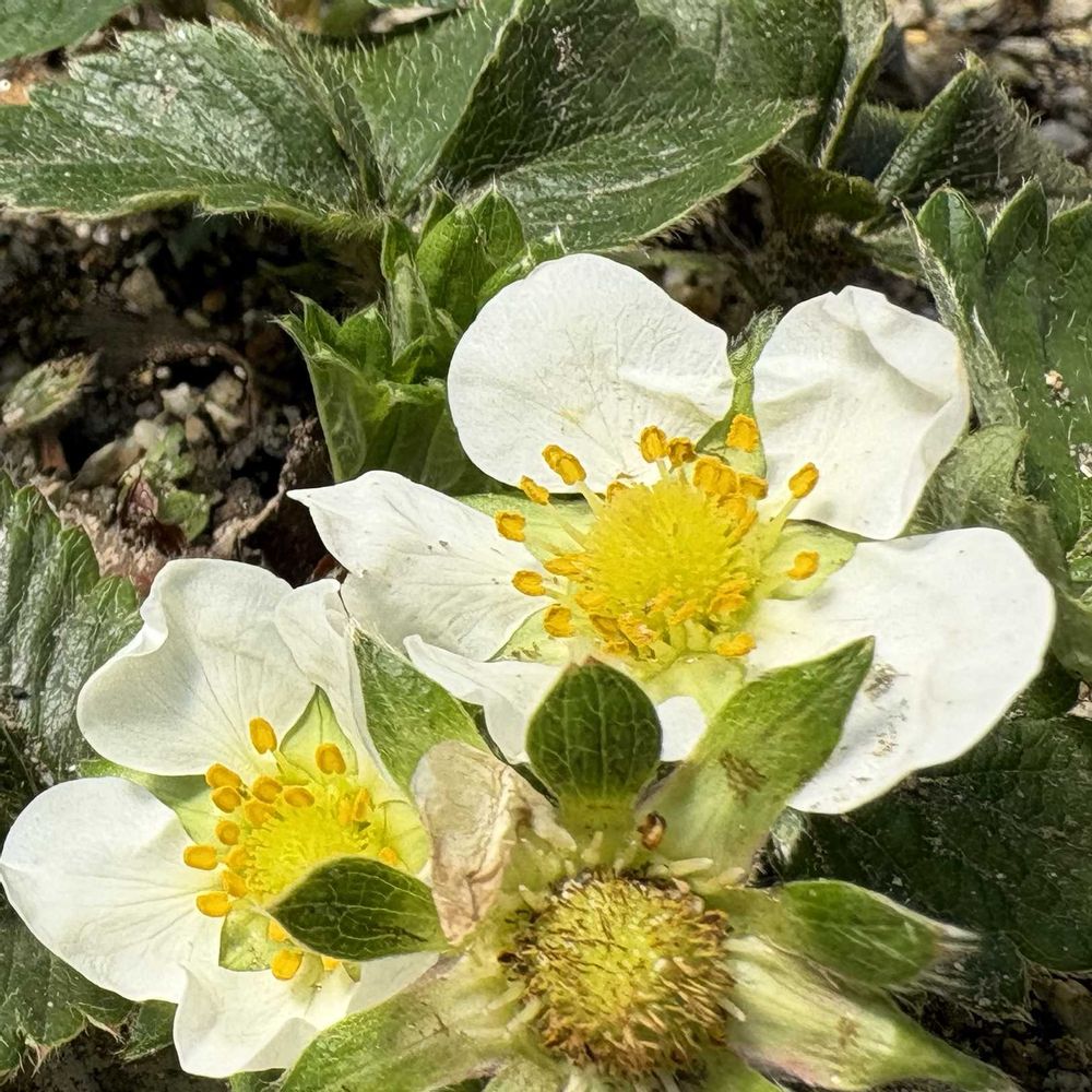 いちご🍓わが家の農園もお花が咲いてます❁⃘*.゚実になるの楽しみですね😊