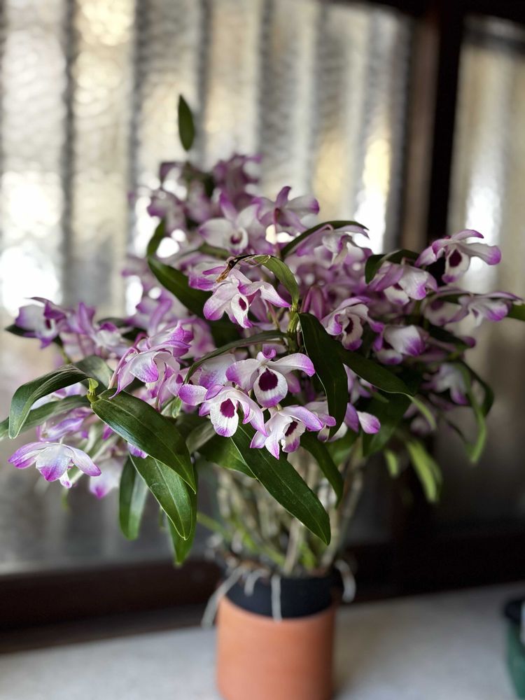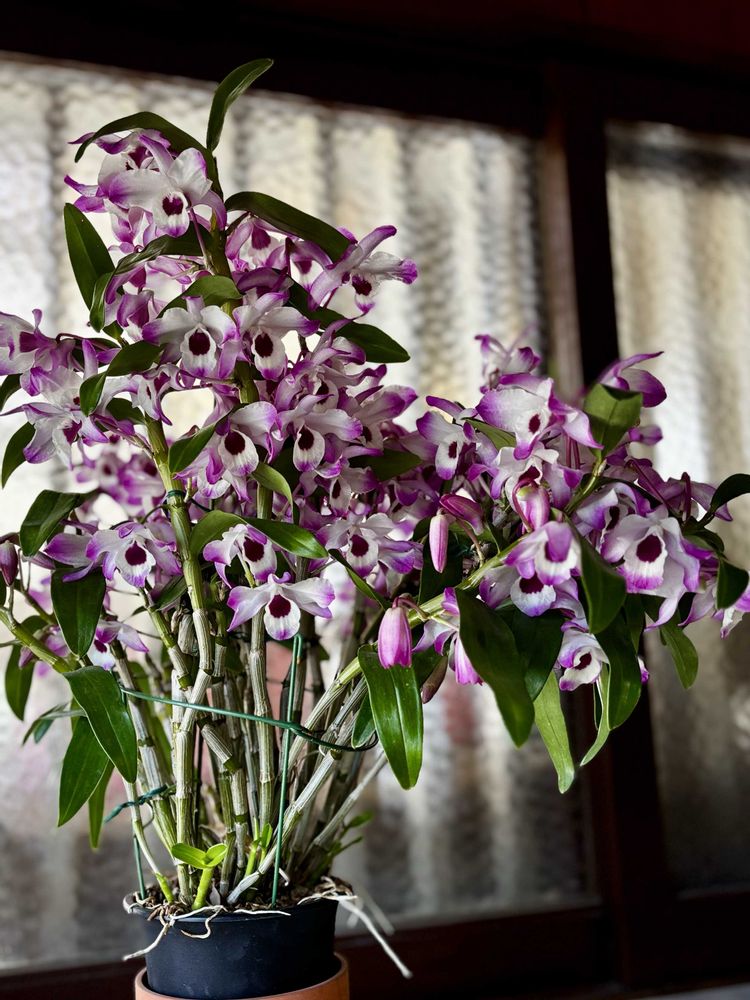 他のデンドロビウムは花付きイマイチなのですがこのお花だけやたらと花盛りになってくれました🌸