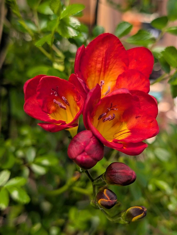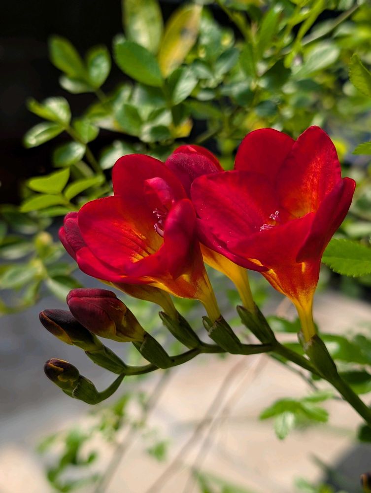 ついでにフリージア、黄色の次は赤い花の開花