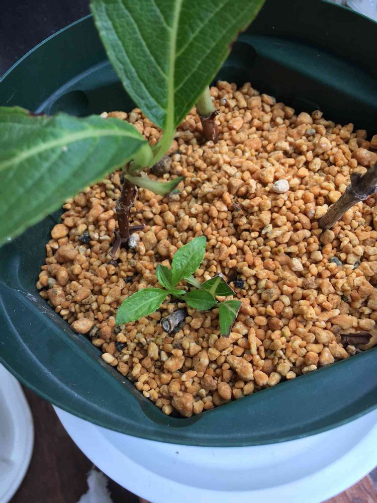職場の前庭に植栽されていたハコネウツギ。剪定している時に枝を頂いて挿し木しました。鉢底から根がはみ出し、芽が吹いて来ました*\(^o^)/*