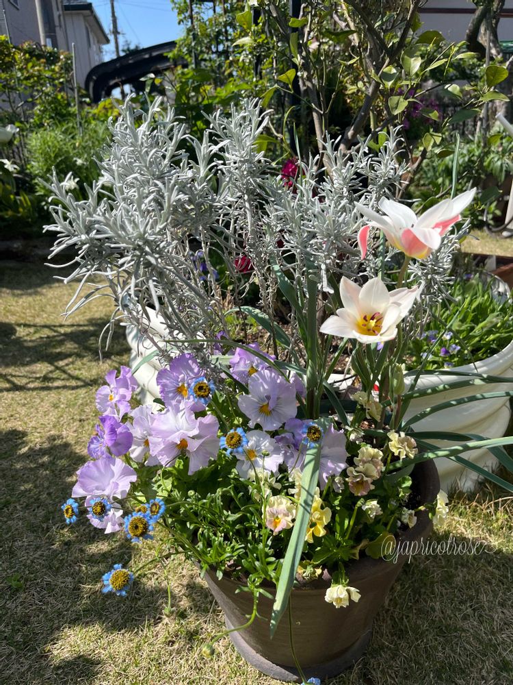 やっと少し動く気になったので今年のチューリップ🌷の寄せ植えの写真撮りました。