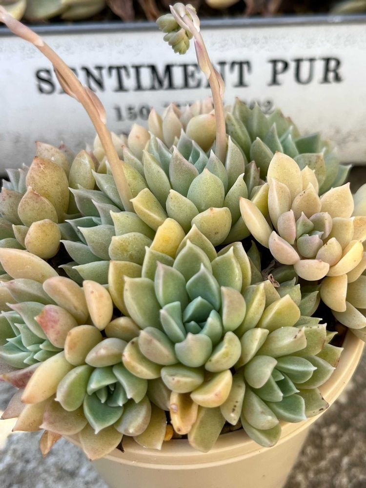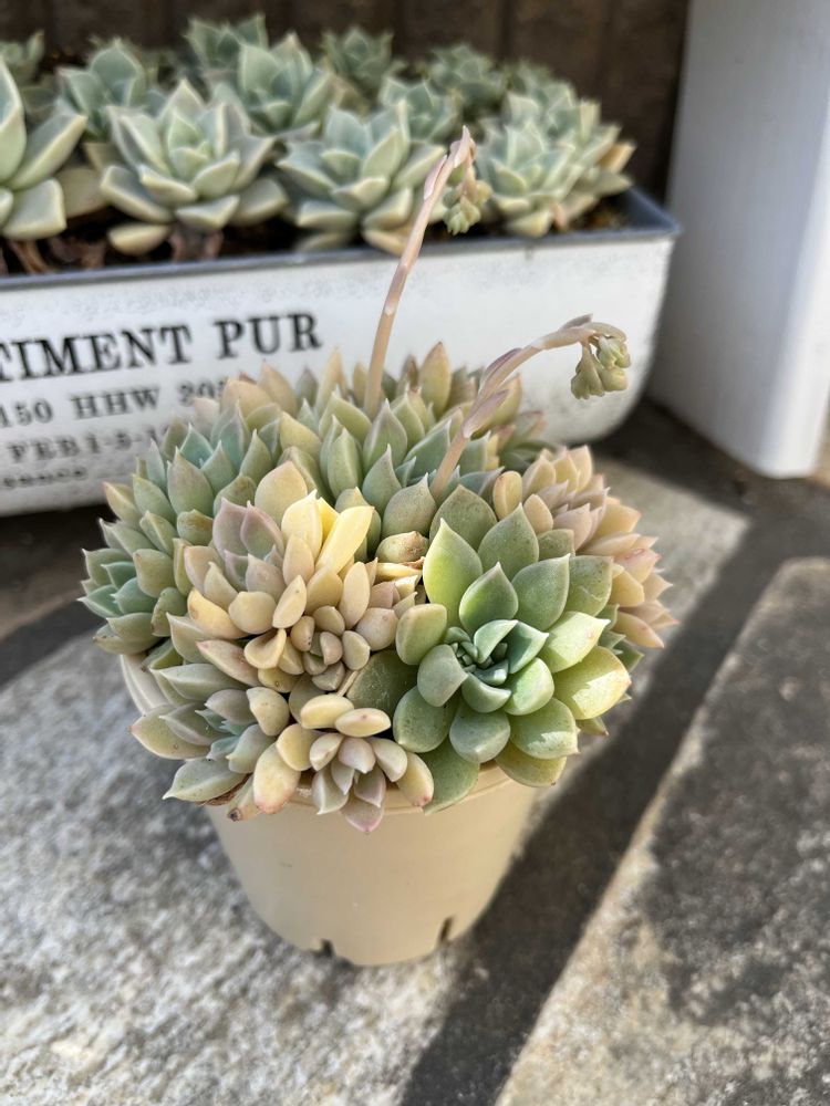 2025年4月にネットでたにたのさんの苗を購入した時におまけでついてきた名無しのエケベリアが面白く育っているので、成長記録を作りました。 この子の名前ご存知でしたら、ぜひ教えてください🙏
