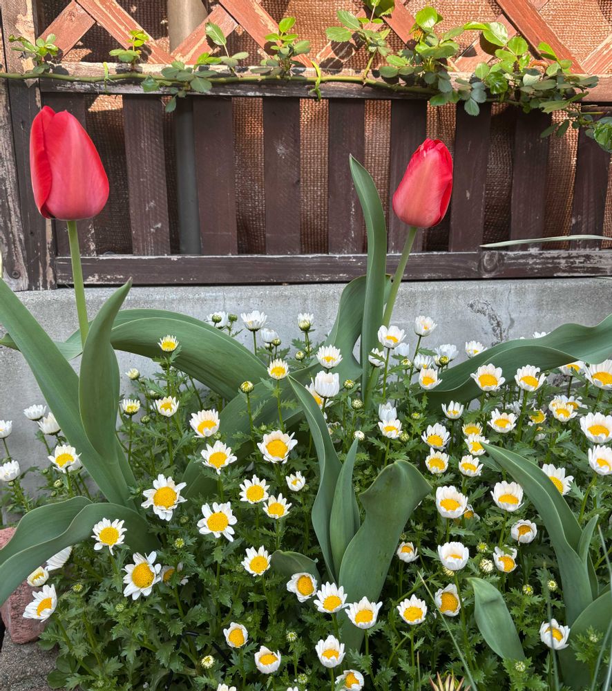 どこにでもあるチューリップとノースポール