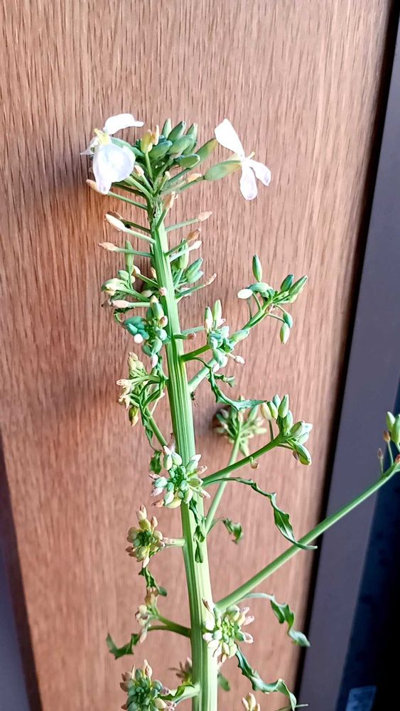 ダイコンの水栽培ですが、今日2個咲いていました🤍🤍