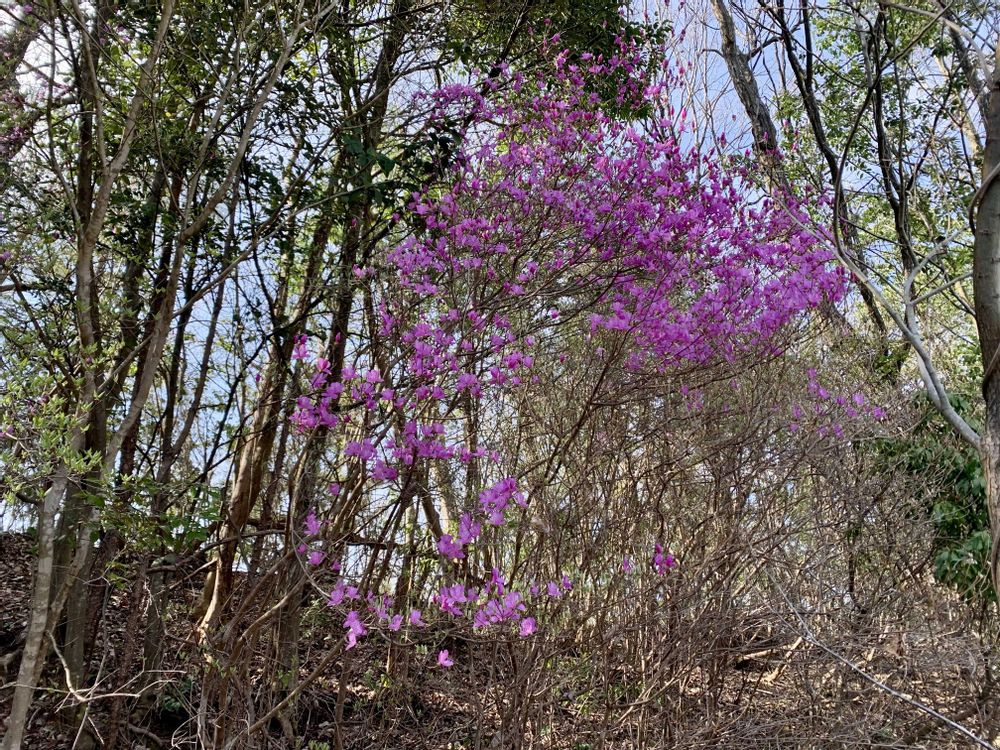 家の裏のワサビが咲きました😀伊豆産のワサビなので他のワサビより大きいです😀桃の木もやっと咲きました🌸岩タバコの葉っぱが出てきてます😀島らっきょうの畑の草むしり完了😅お山のパトロールで日当たりのいい場所のミツバツツジが咲いていました😀