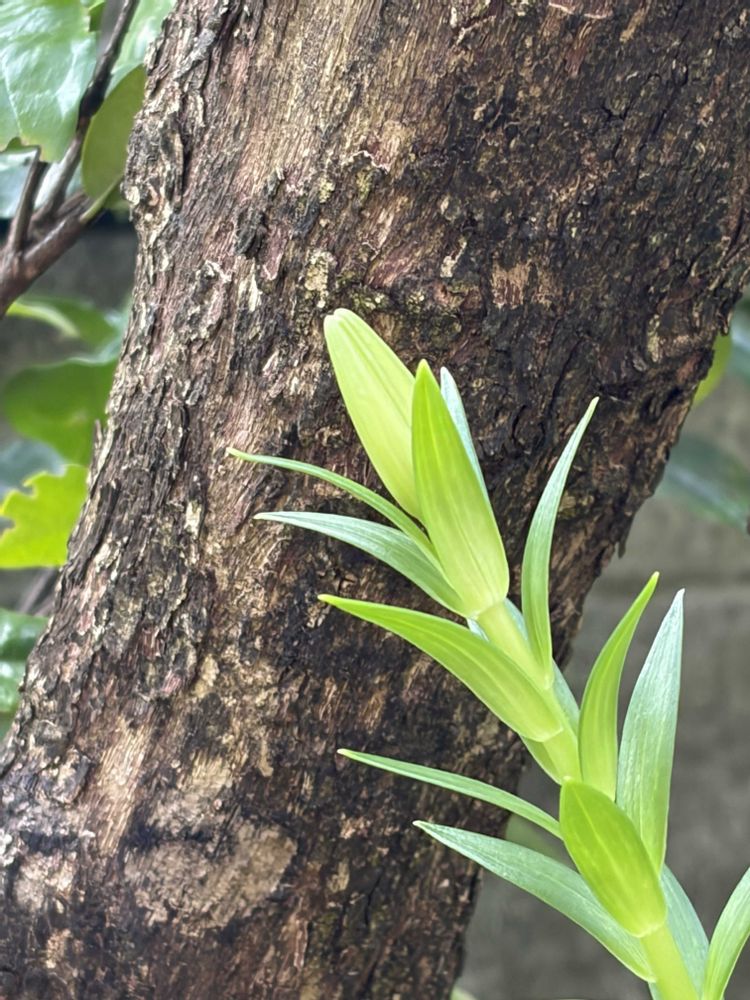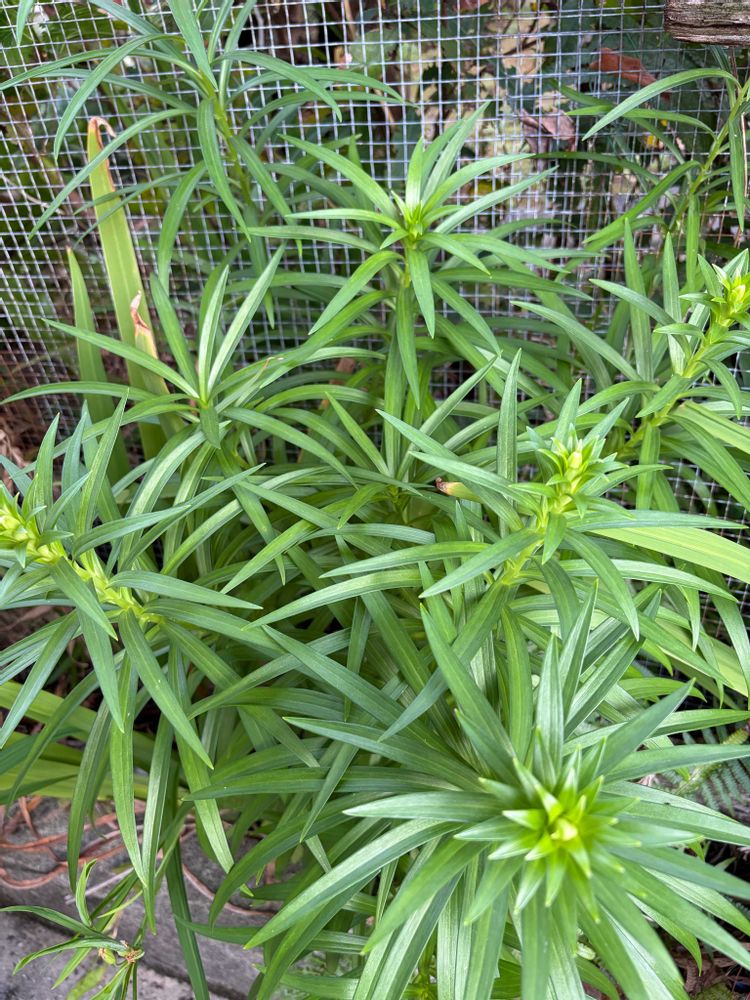 ④テッポウユリ 今年はいつもの年より冷んやりしていたからか、蕾出るのが遅い気がします。