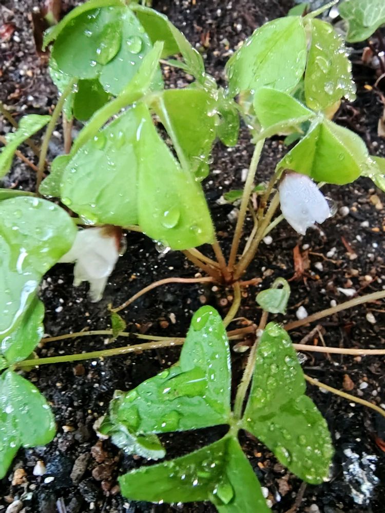 ⑤ 「ミヤマカタバミ」。鉢植えは枯れましたが、地植えは頑張っています。☺