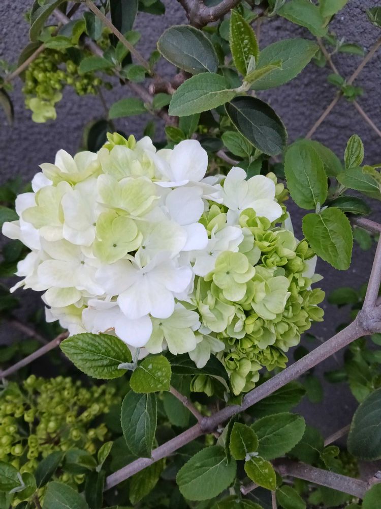 グリーンから白に色変わり。派手だわ🟢🤍大手鞠