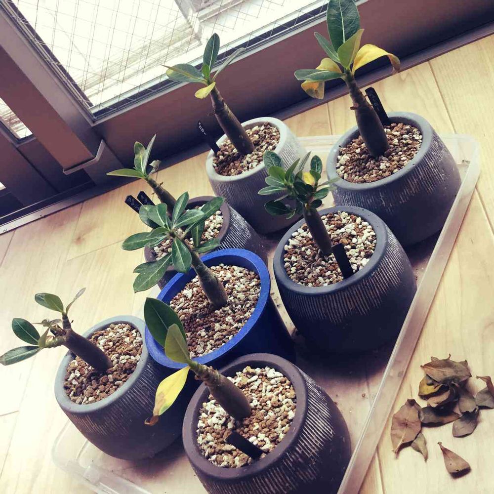 さん、myアデニウムは、全てベランダの塀の上。つまり日照も当たるが、雨も半分は!て環境に、大きいのも、2号鉢の実生も置きっぱです😊