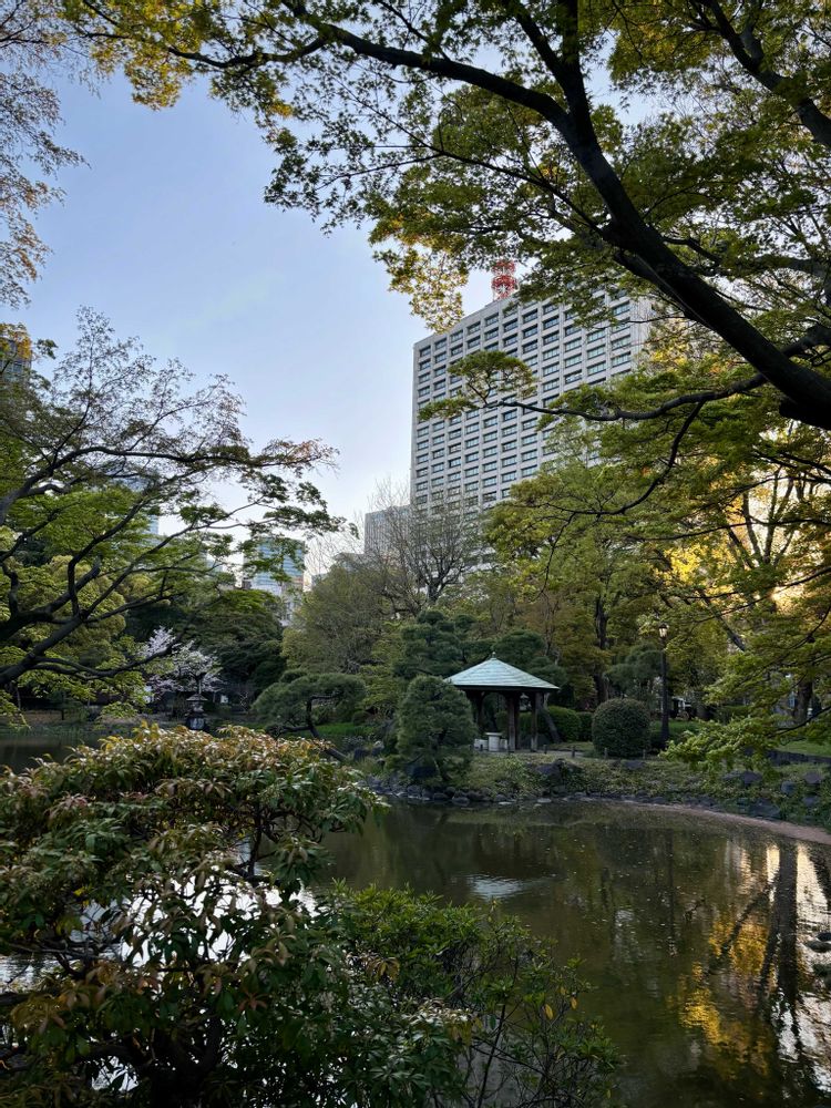 ちょっと肌寒いのでランチで体を暖め🚃毛利庭園へ(フードホールで買い物☕️)〜☔️上がりの庭園を楽しみ🚃新宿御苑へ🎶