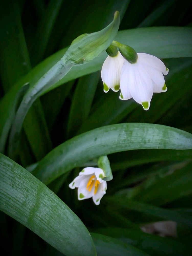 スノーフレークは下向きなので 蕊は覗かないとなかなか撮れませんが〜こんなふうに見えるのがあったで 一緒に撮ってみました😄