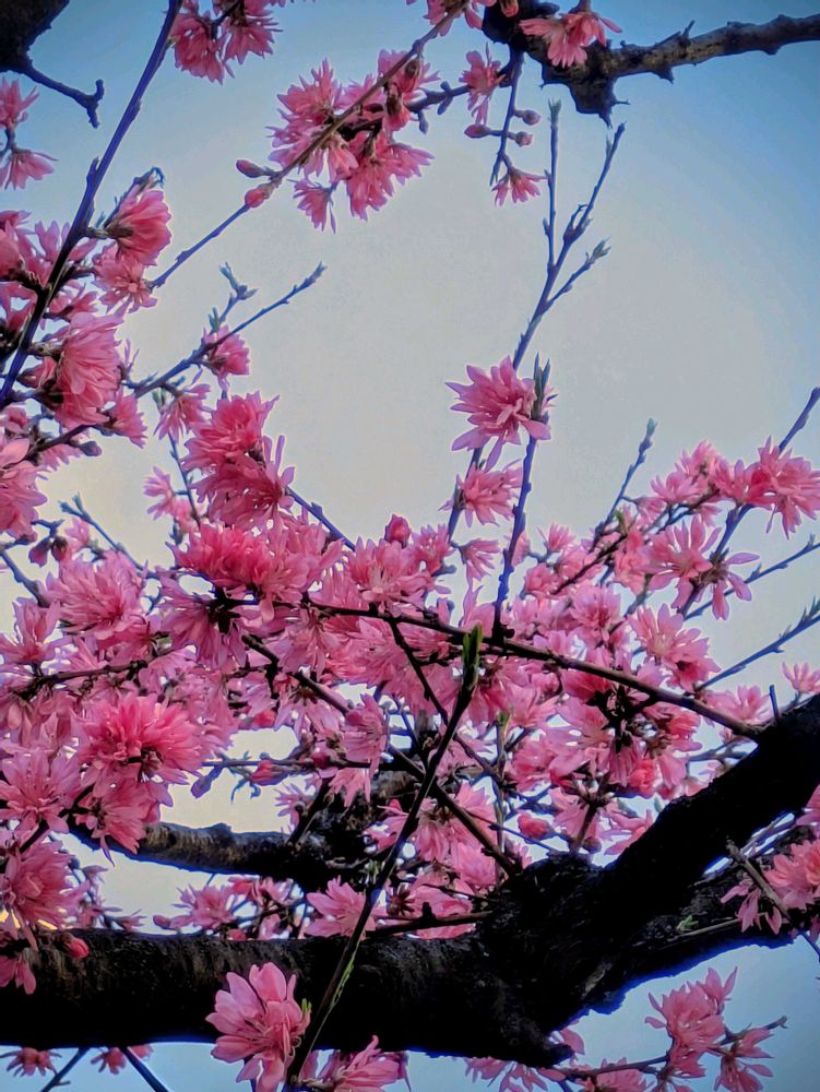 普通の桃の花に少し遅れて咲き始めるようで〜満開🌸🌸🌸🎶