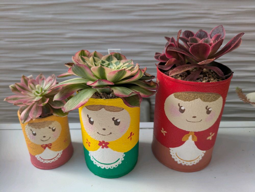 可愛らしいマトリョーシカ風のリメ缶 早速アエオニウム植えてみました😊