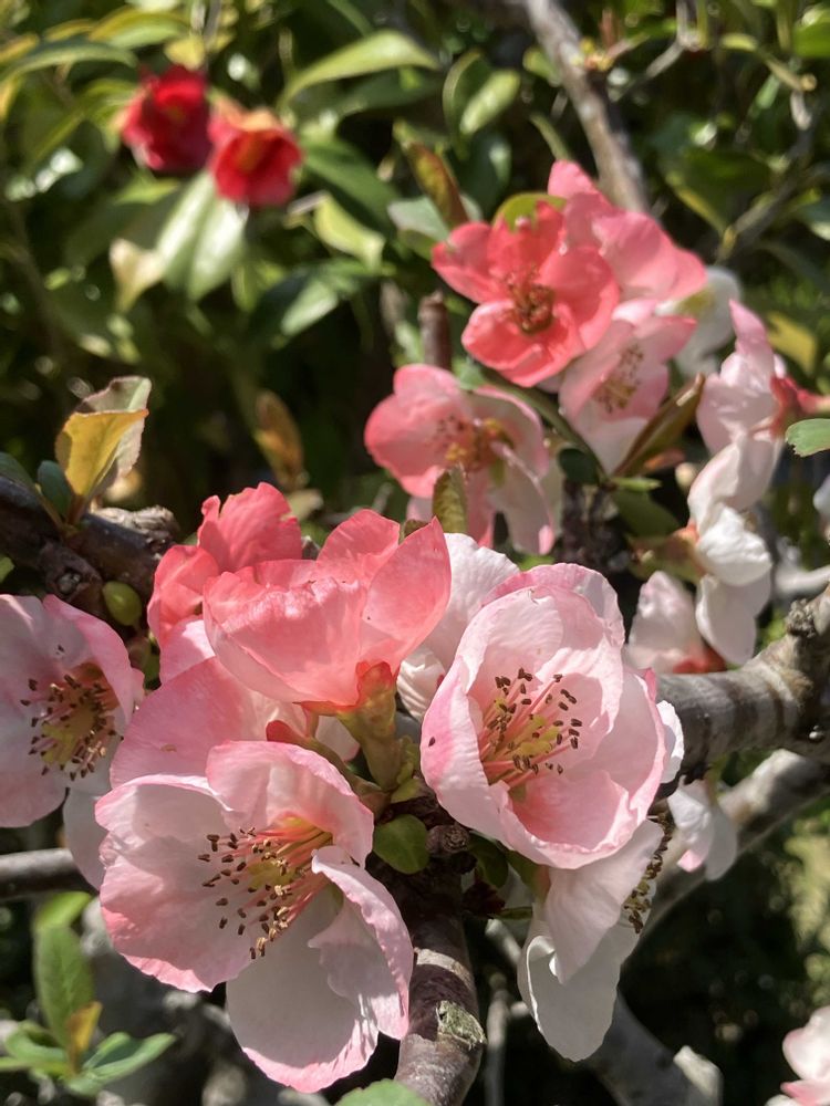 様々な花色で咲くボケの花