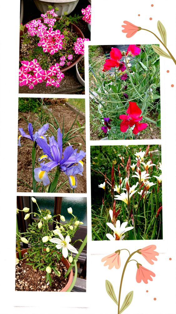 スイートピー、スパラキシス、クレマチス、ダッチアイリス、バーベナ!
