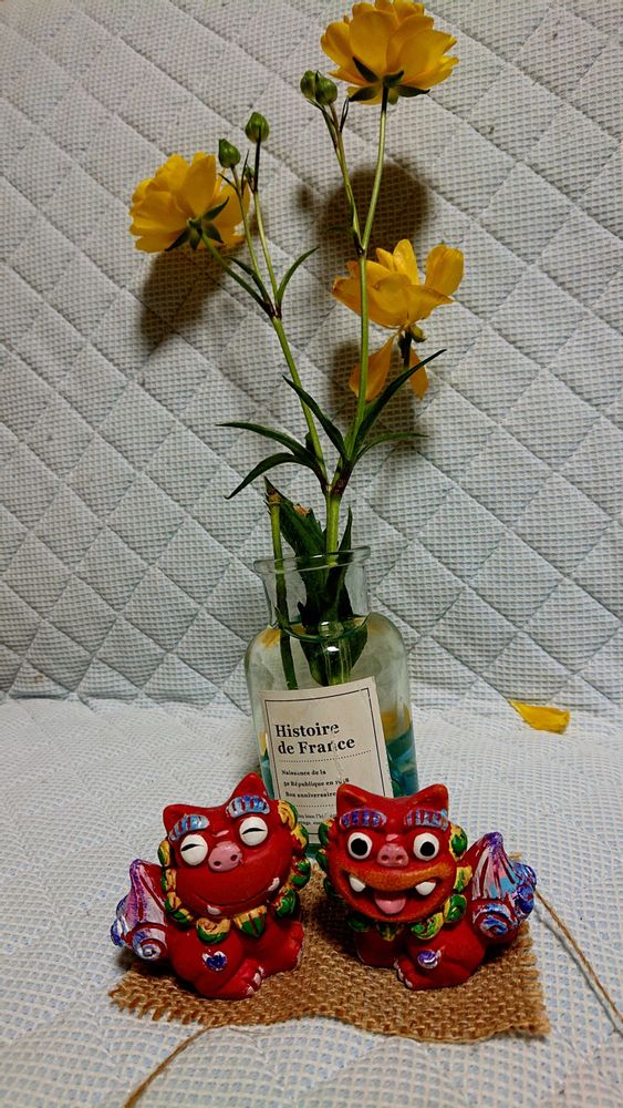 昨日4/3シーサーの日だったそうで、娘達が沖縄に行ったとき魔除けと守護神として買ってきてくれました。
